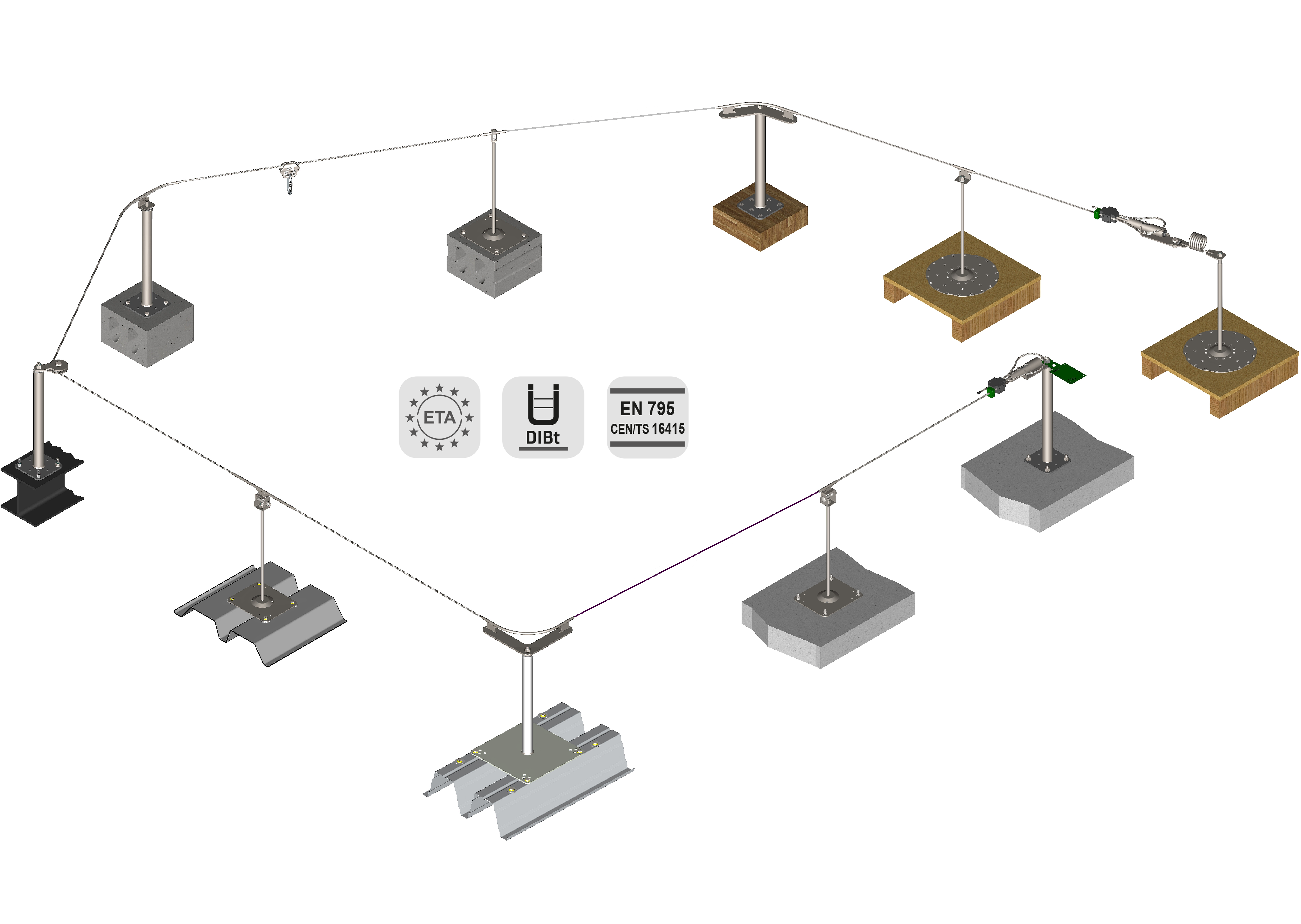 Dank der umfangreichen Systemkomponenten lässt sich die Personensicherung objektbezogen in vielen zu sichernden Gefahrenbereichen installieren. Die Befestigung ist dabei an einer Vielzahl von Unterkonstruktionen möglich und die einzelnen Systemkomponenten ermöglichen auch bei komplexen Montagesituationen eine zügige, einfache und fehlerfreie Installation mit großen Befestigungsabständen. Zudem bieten hochwertige Materialien wie Edelstahl und Aluminium eine langlebige Nutzung auf höchstem Niveau.