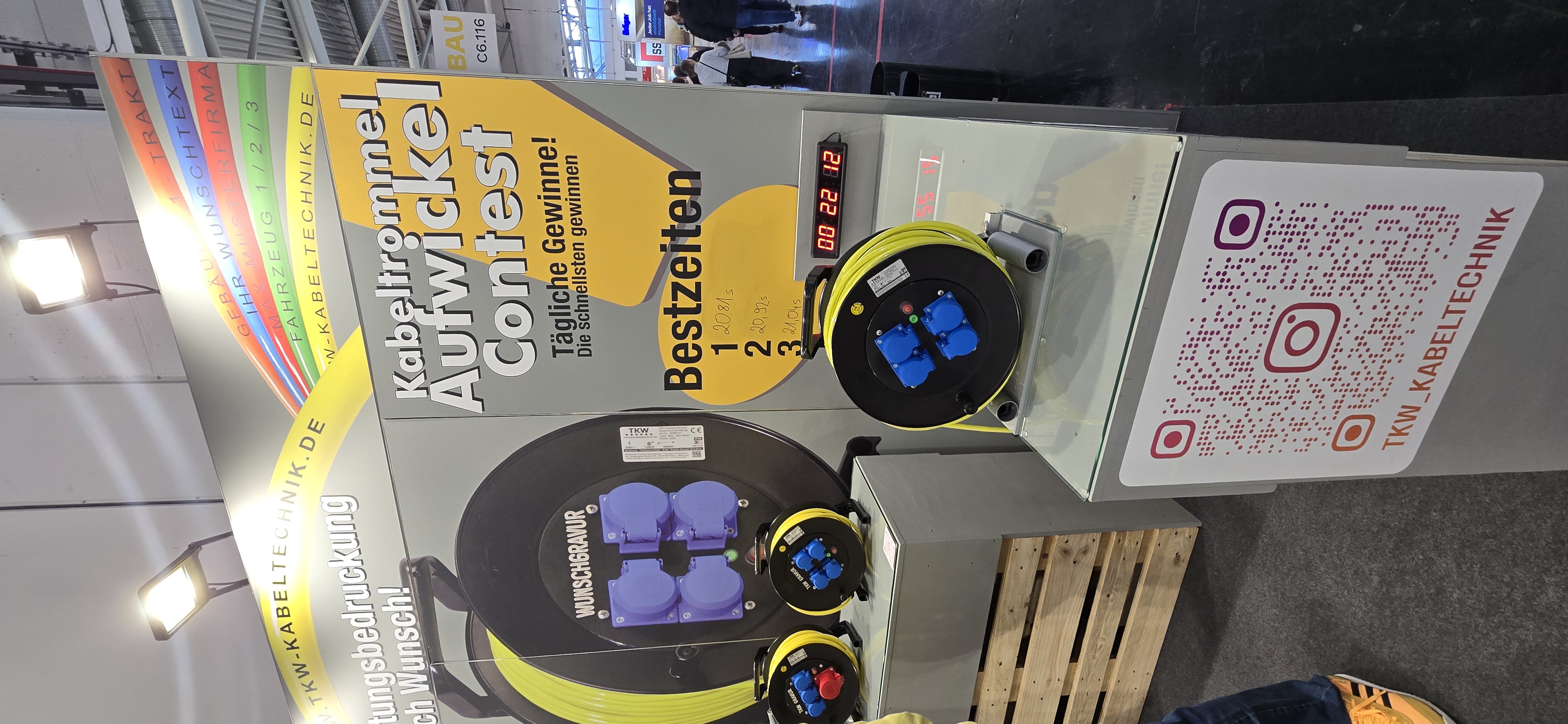 Nehmt an unserem Aufwickel-Contest teil! Die schnellsten Teilnehmer gewinnen attraktive Preise – unter anderem eine Kabeltrommel oder ein Verlängerungskabel. Parallel präsentieren wir unsere Produkte.