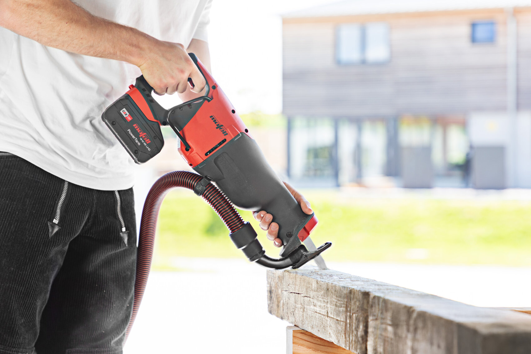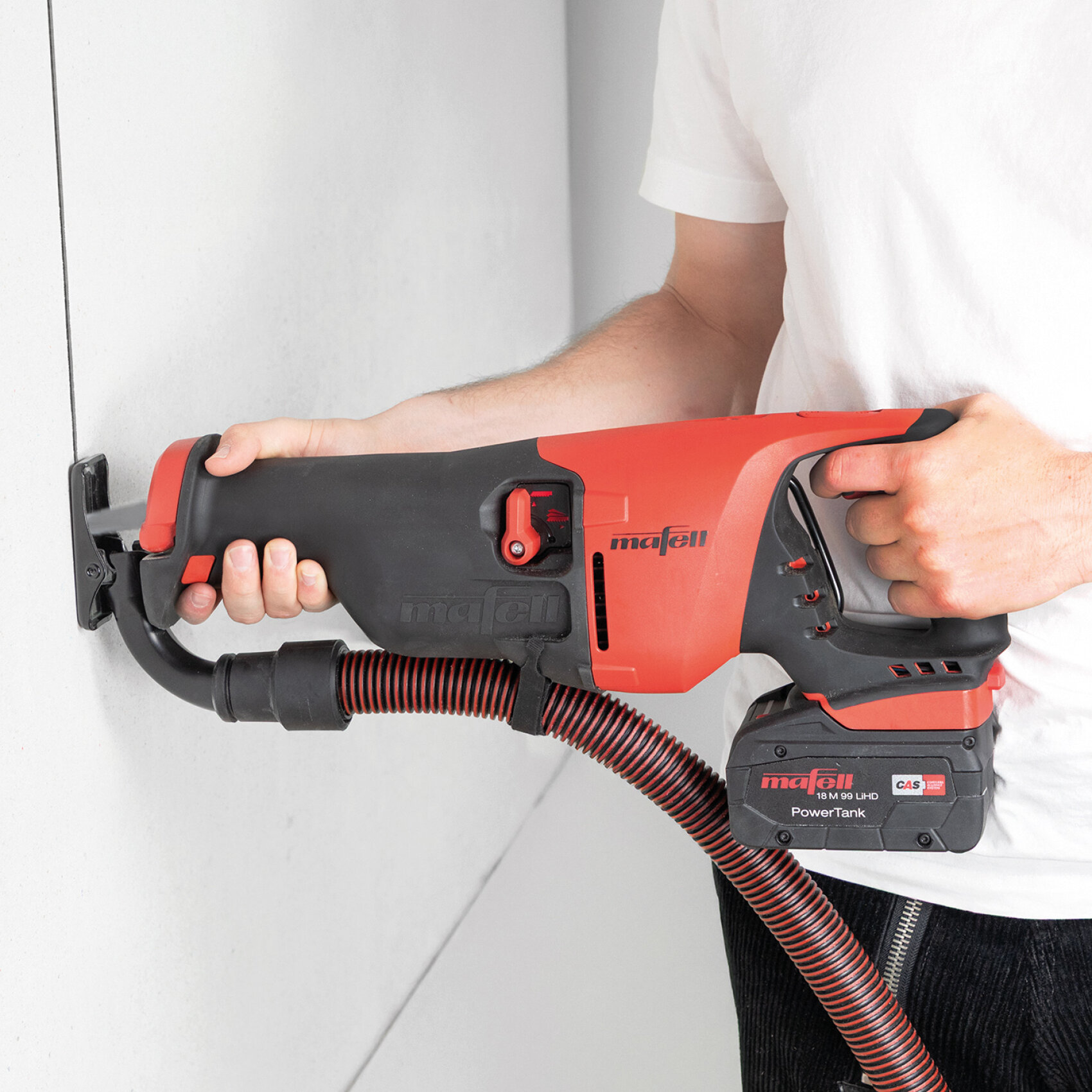 Die Säbelsäge ist auf der Baustelle immer und schnell zur Hand: Die Trockenbauplatte für einen Abwasseranschluss oder die Dämmplatte für ein Lüftungsrohr aussparen, Montageschaum nach der Türdemontage entfernen oder Fensterrahmen aussägen. Deshalb hat MAFELL den Fokus darauf gelegt, dass die Säbelsäge kraftvoll, aber gleichzeitig gut ausbalanciert ist und in verschiedenen Arbeits- und Griffsituationen einfach und sicher geführt werden kann – auch über Kopf.