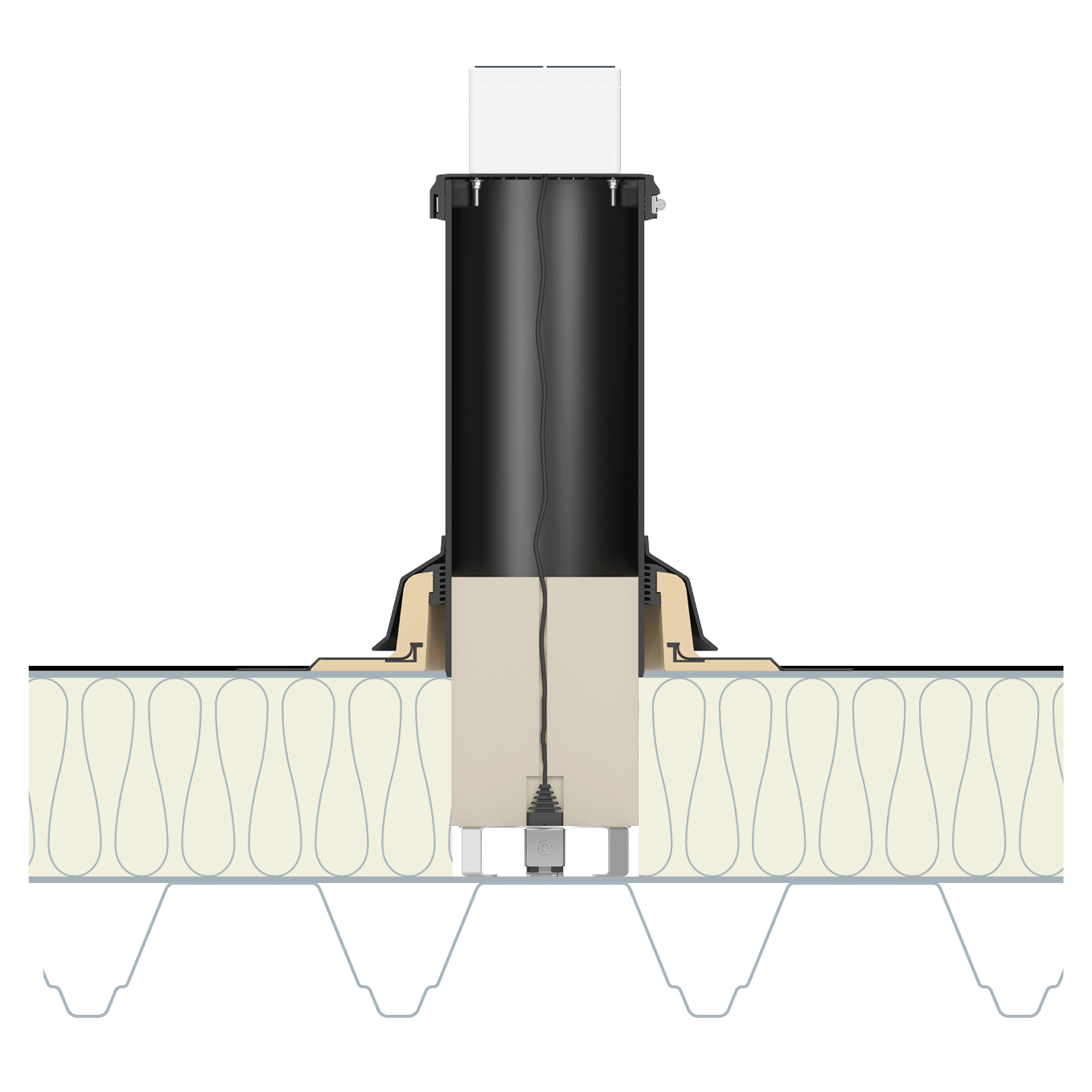 Oben und unten auf dem PostenDer digitale Hydrosensor wird bei Neubau oder Sanierung platziert. Sein robustes, wetterfestes Gehäuse sitzt oben auf dem Flachdach, aber sein Feuchtesensor arbeitet direkt auf der Dampfsperre. Dies erfordert einen Zugang durch das Dachschichtenpaket. Dr. Susanne Kasparek vom Sita Produktmanagement: „Damit es dort nicht zu Sicherheitslücken kommen kann, empfiehlt sich der Einsatz des SitaVent Revision, der durch den Hydrosensor quasi digitalisiert wird.“ Das kompakte, fest verschraubte Gehäuse des Dachlüfters dient als Homebase für den Hydrosensor. Es fügt sich elegant in den Dachaufbau ein und eröffnet den einfachen Zugang bei Wartung oder Austausch. Für den Fall, dass der Hydrosensor nur temporär genutzt werden soll, kann der SitaVent Revision später auch zur manuellen Kontrolle eingesetzt werden.
