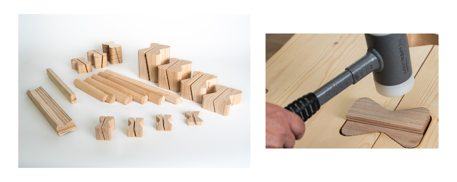 • X-fix ist eine hochbelastbare, metallfreie Holzverbindung ist leicht rückbaubar, auch nach Jahrzehnten, nach dem Prinzip „CRADLE TO CRADLE
