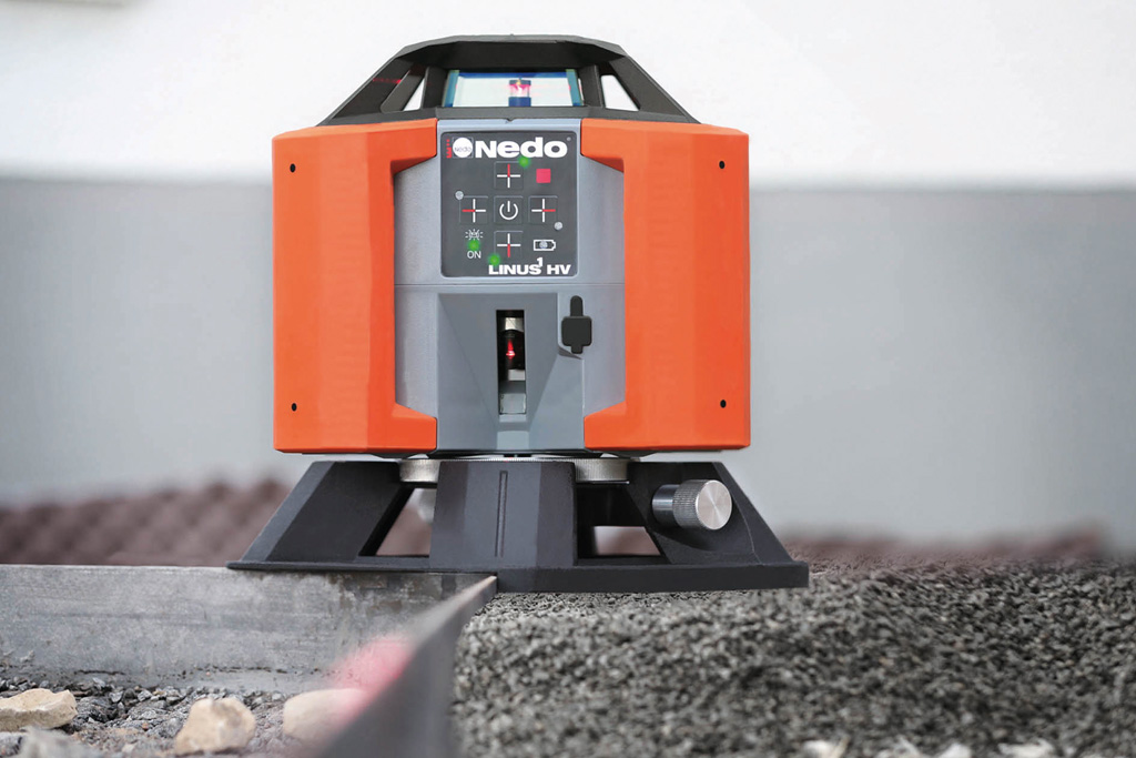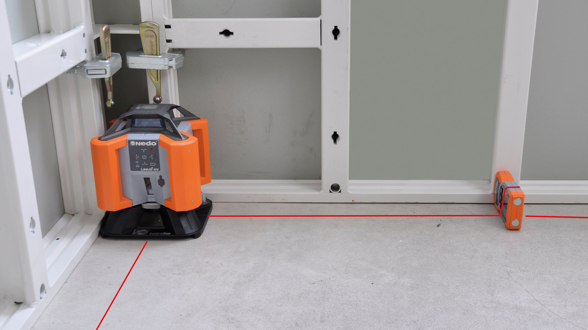 Somit eignet sich der neue Nedo LINUS 1 HV nicht nur zum Nivellieren und Fluchten, sondern auch hervorragend zum schnellen und bequemen Abtragen rechter Winkel im Außenbereich. Perfekt beim Schalungsbau, beim Bau von Carports, Terrassen, Garagen oder beim Verlegen von Platten, Fliesen und Pflastersteinen.