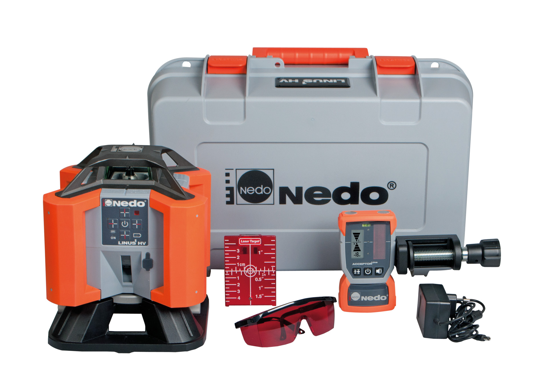 Nedo LINUS 1 HV ist ein vollautomatischer Universallaser mit 90°-Funktion zum Nivellieren, Fluchten und Übertragen rechter Winkel im Außenbereich und Innenausbau.