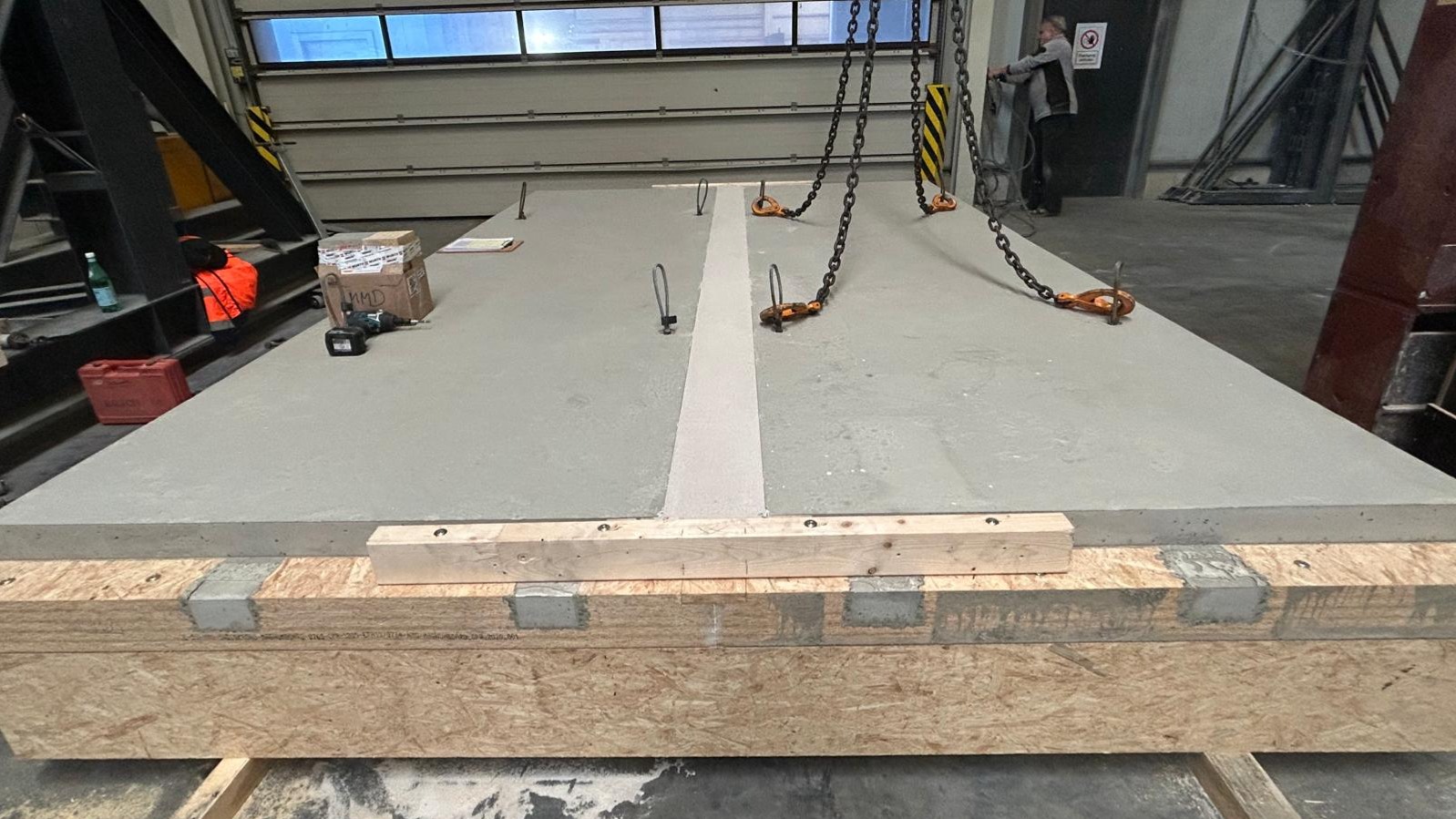 Die im November 2025 am ift Rosenheim durchgeführte, normgerechte Brandprüfung bestätigt: Die massive Holz-Beton-Verbunddecke erreicht 90 Minuten Feuerwiderstand bei gleichzeitiger Volllastbelastung. Damit präsentiert SWISS KRONO hocheffiziente massive OSB/4-Deckenelemente mit zugbewehrten Stahlbeton-Rippen für große Spannweiten, die den hohen Anforderungen an Brandschutz, Tragfähigkeit und wirtschaftlicher Bauweise gerecht werden.
