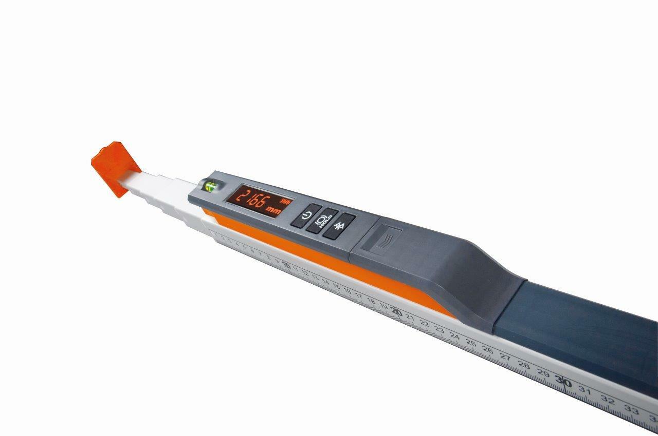 Der mEsstronic 2 zeichnet sich durch eine integrierte Bluetooth-Schnittstelle, ein großes, beleuchtetes Display und eine sehr robuste Bauweise aus. Durch die integrierte Bluetooth-Schnittstelle können Messwerte direkt auf ein Smartphone, ein Tablett oder einen Laptop übertragen werden. Einfach messen, die Bluetooth-Taste drücken und schon ist der Messwert z.B. in ein digitales Aufmaß-Formular eingefügt. Eine spezielle Software ist für die Datenübertragung nicht notwendig. Die Messwerte können auf einem mobilen Endgerät in jeder beliebigen App genutzt werden. Das große, beleuchtete Display des mEsstronic 2 ermöglicht ein bequemes Ablesen der Messwerte, auch bei ungünstigen Lichtverhältnissen. Mit Hilfe der Hold-Funktion kann ein Messwert auf dem Display festgehalten werden. Durch das Blinken des Messwertes ist die aktivierte Hold-Funktion erkennbar. Eine Kombi-Libelle ist in das Anzeigegehäuse integriert und erleichtert das Messen sowohl in horizontaler als auch in vertikaler Lage. Die Abschaltautomatik verhindert eine unnötige Entladung der beiden AA-Batterien. Mit einem Messbereich von maximal 3 m bzw. 5 m deckt der neue mEsstronic 2 mit Bluetooth alle typischen Messaufgaben im Innenausbau ab.