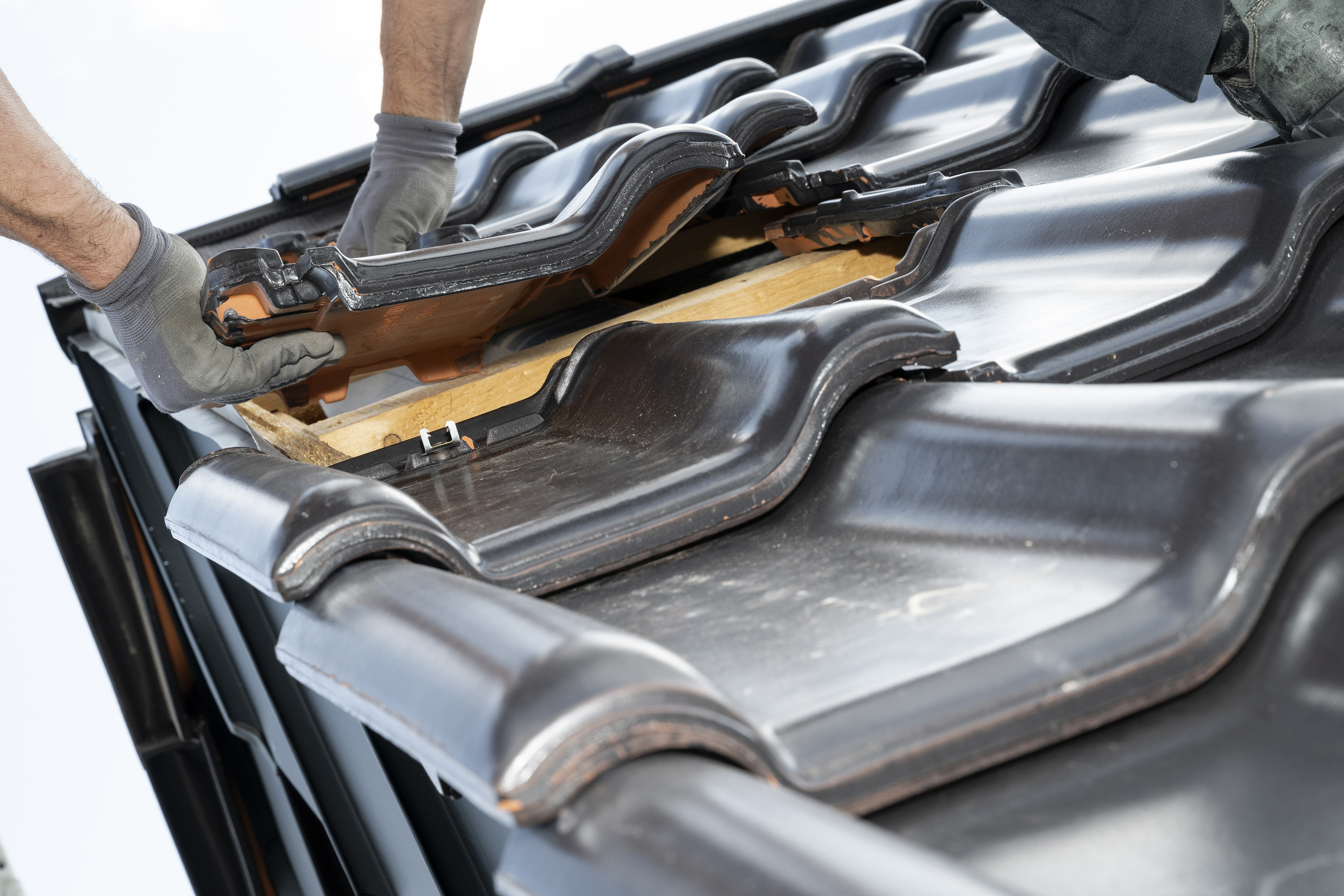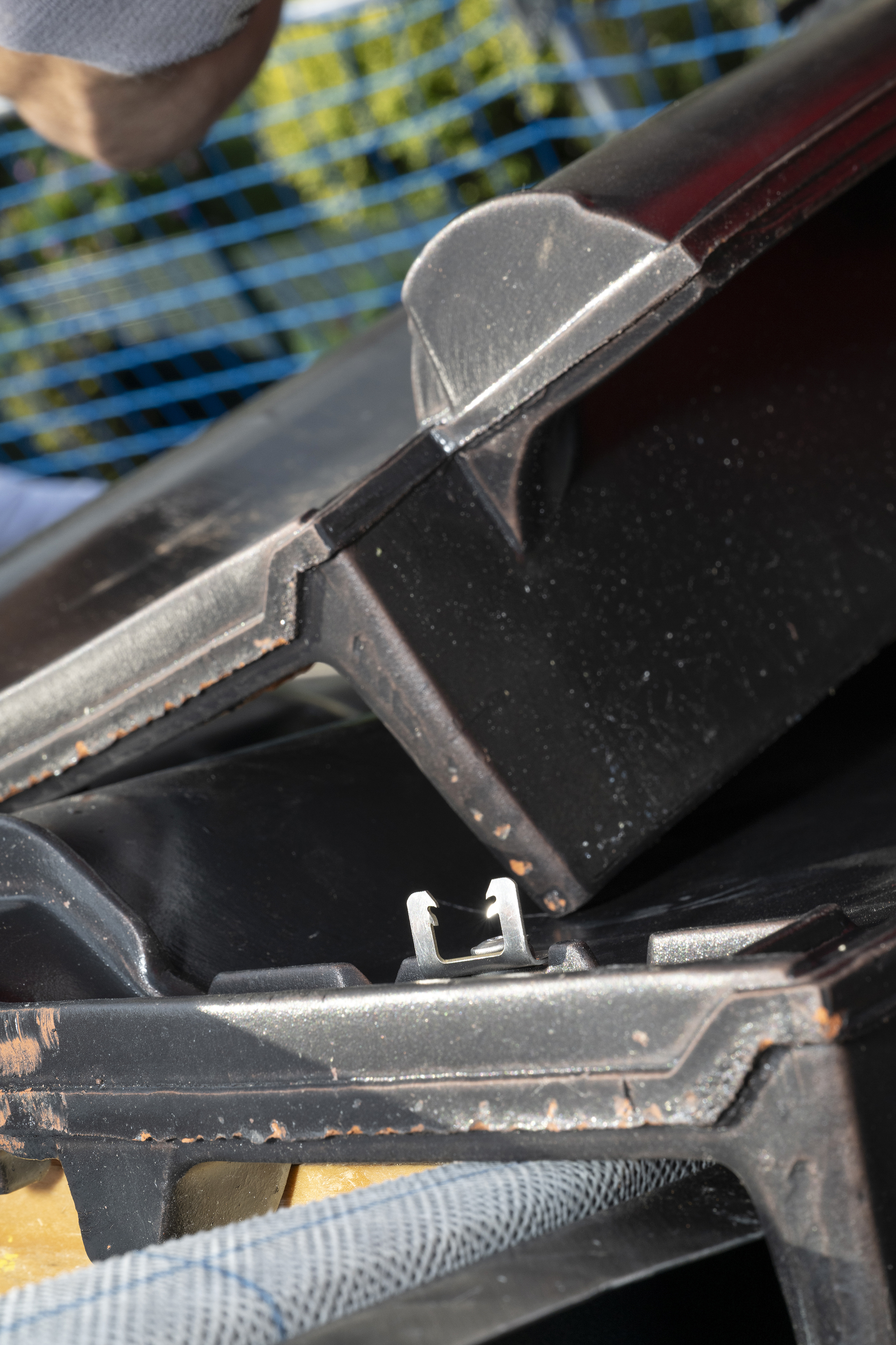 Quick & Safe: Die regelkonforme Sturmsicherung für alle linken Ortgangziegel und Doppelkremper der LAUMANS Modellreihen – mit exklusiver Sicherung im Kopf- und Fußbereich.