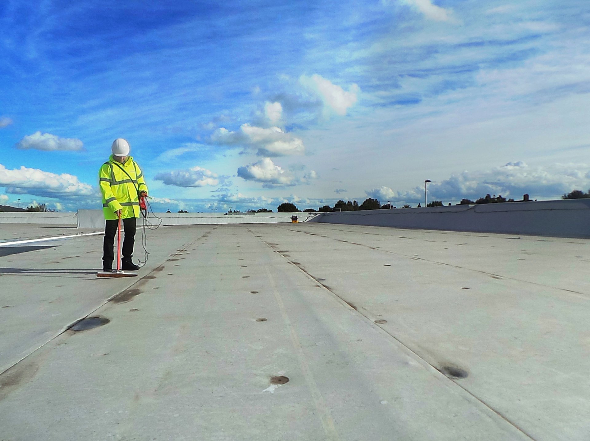 The British manaufacturer Buckleys has been offering a proven testing method based on electrical conductivity for decades to detect leaks in tank construction. Bulding on this extremely stringent quality control process used in tank construction, the principle has been adapted for leak detection on dry flat roofs. Essentially, the system uses, the conductivity of the substrate beneath the membrane (condensation I moisture on the roof surface is almoste alsways presen) to creat an "open electrical circuit".